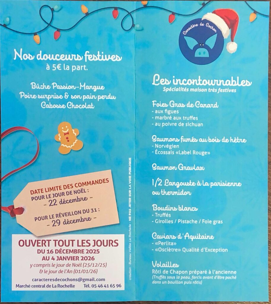 Notre menu des fêtes 2025 – 2026.